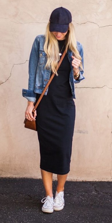 To be sexy in a total denim look, we put on the mid-length denim skirt with buttons that marks the waist with a white top, a short denim jacket, and boots or ankle boots. Without forgetting the belt, a handbag, a pair of “cat’s eye” glasses, and your most beautiful glamorous jewelry.