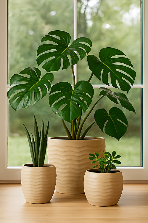 Different shapes– Big plants with eye catchy shapes are perfect to include as a part of cluster as they become the highlight of the set up. Like choose a Swiss cheese plant as the main highlight and pair it along with Snake plant and a Jade.