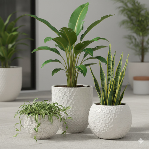 Play with textures– Mix and match plants in different textures and colors which are not too distinct but still visibly apart. For example you can pick plants with yellow and green leaves and needless to say that the texture, size and look of each plant is always different from each other. For example a combination of Banana palm, Snake plant and a Spider plant is so appealing here.