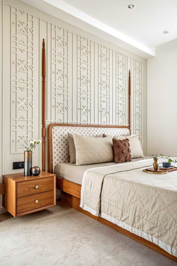 Wooden beds are again in trend and especially the ones which has antique or age old design. Using traditional designer beds adds a royal and tasteful look to your home, and there are so many design elements which you can use to play around to decorate the room further. One such way is to decorate the wall behind the bed and this is how you can do it….