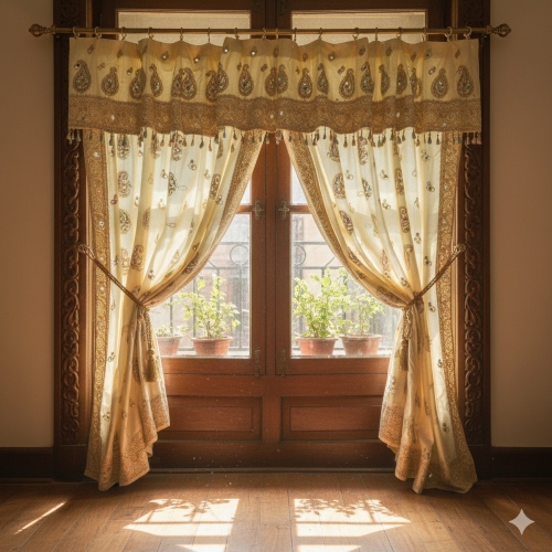 Use as blinds– Choosing fabrics for curtains and blinds is tricky, and not so pocket friendly if you are looking for something rich. But if you have an old saree which no longer interests you, then use them as a fabric for your blinds and they will change the look of your home completely.