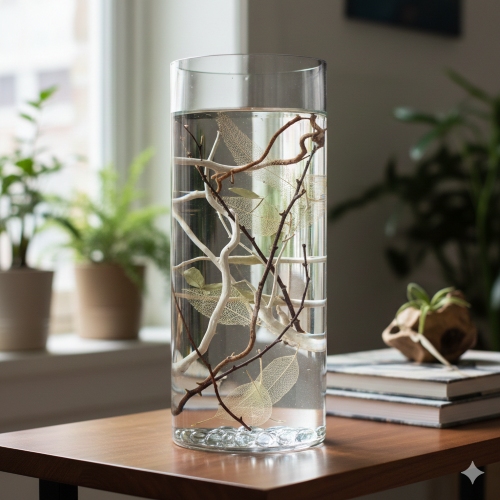 – You can also add stones, pebbles, shells at the bottom for a beach look. Sand is also a good option with stones to give a natural feel to the arrangement.