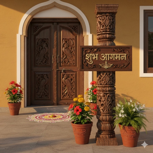 – And if your welcome board does not has any provision to keep fresh flowers then don’t worry as you can always keep few floral pots next to it.