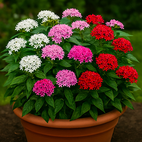 Pentas– A five petaled flowers comes in various colors and grows in clusters. They may be red, white, lavender, purple, or shades of pink. Some are two-toned and they attract butterflies, and delight hummingbirds.