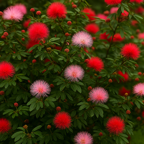 Powder Puff Plant– The red needle like flowers are as soft as a feather and the plant grows quiet big with time.