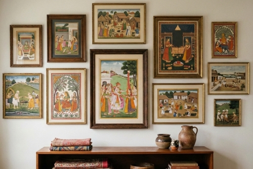 Traditional paintings– Create a wall where you can put a series of traditional Indian paintings, like Worli, Madhubani, Pattachitra etc.
