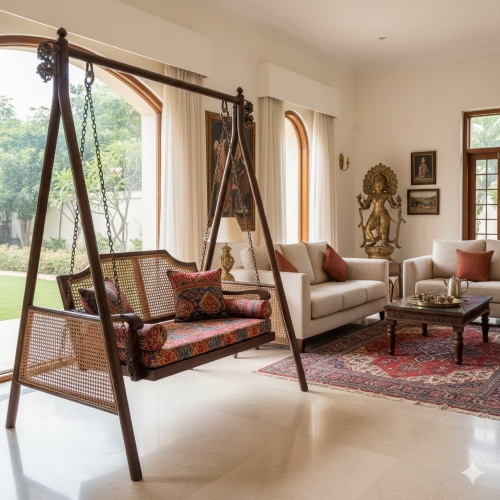 Traditional Swings– Traditional swings made in Indian style give a very royal feel to the house. Made generally of metal and wood, they add a luxurious feel to the home.