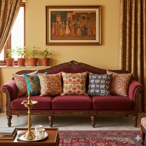 Bright Indian Cushions– Using bright cushions adds a peppy feel to the home, and what’s better than to decorate home with Indian inspired prints and embroideries. Throw in sofa cushions, floor cushions and foot stools in traditional prints and embroideries.