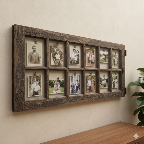 Photo frame– An old door with glass divisions can be turned into an amazing family photo frame.